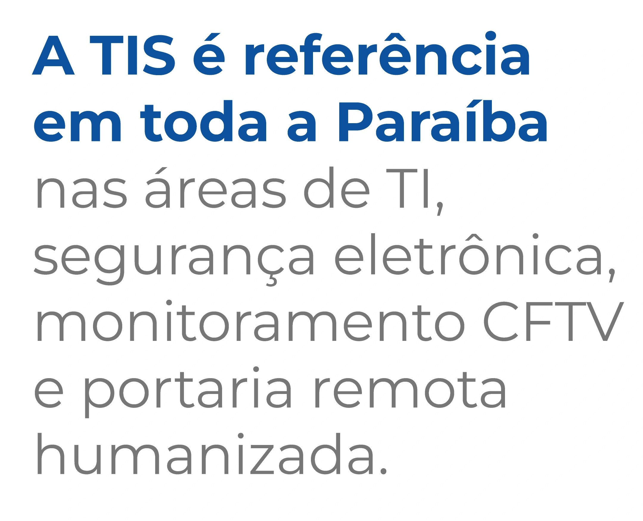 Com mais de 35 anos de experiência em Campina Grande, a TIS é referência regional em TI, segurança eletrônica e portaria remota humanizada, oferecendo soluções personalizadas com equipe própria especializada.